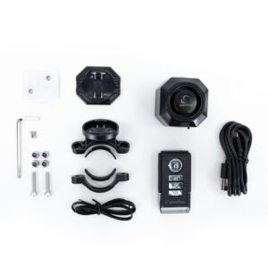 Incluye: Alarma, control remoto, cable USB tipo C, manual de usuario y accesorios para la instalación.