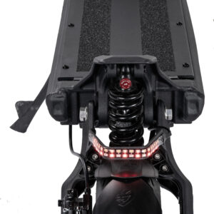 La experiencia de conducción es insuperable: la suspensión ajustable de doble rebote (amortiguadores helicoidales KKE) en combinación con los neumáticos sin cámara extra anchos de 10 «y el centro de gravedad bajo brindan una conducción suave y estable, tanto a altas velocidades como fuera de la carretera. Los frenos hidráulicos Logan de dos pistones con rotores de 160 mm ponen una potencia de frenado superior al alcance de su mano. También al alcance de la mano en el lado derecho se encuentran los controles de manejo, desde un suave acelerador con el pulgar hasta la bocina ruidosa, el faro ultrabrillante de 2000 lúmenes y las señales de giro que operan la brillante tira de LED orientada hacia atrás. En su lado izquierdo está el selector de modo de conducción que también opera la pantalla central brillante que permite una personalización avanzada de 5 modos de conducciónpara adaptarse a sus estilos de conducción preferidos.