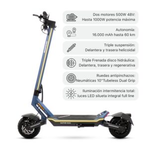 - Doble motor con una potencia nominal de 1000W 48V cada motor.