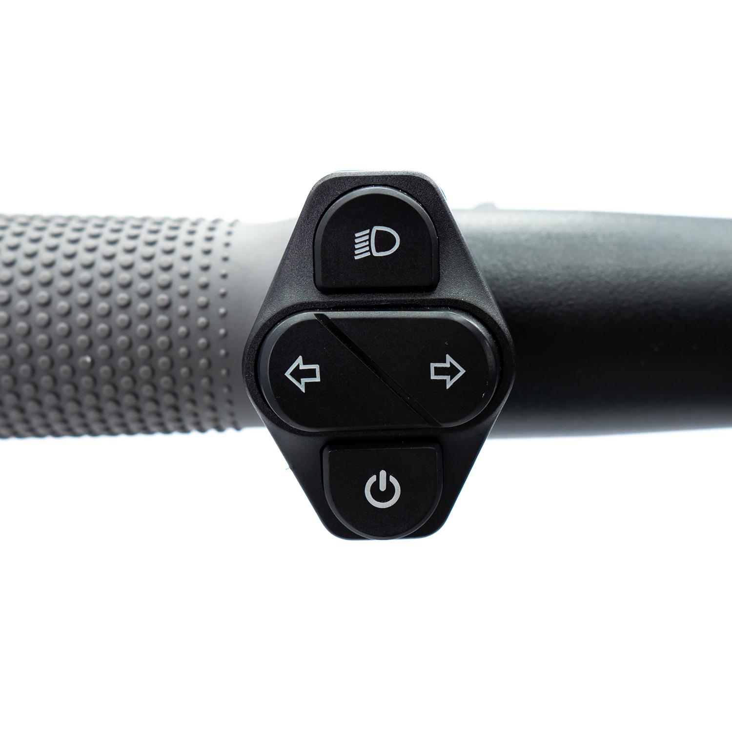 - Intermitentes delanteros y traseros que podrás activarlos desde el manillar