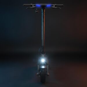 - Luces: Foco frontal de alta luminosidad, intermitentes, leds ambientales RGB en la base y luz de freno trasera para que te vean mientras circulas.