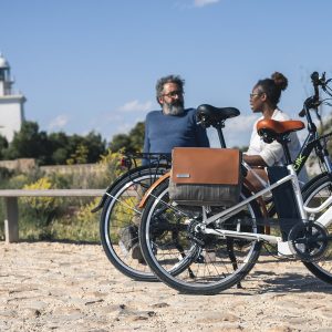 Alforjas de poliéster para fijación en portaequipajes trasero de la marca Biwbik.