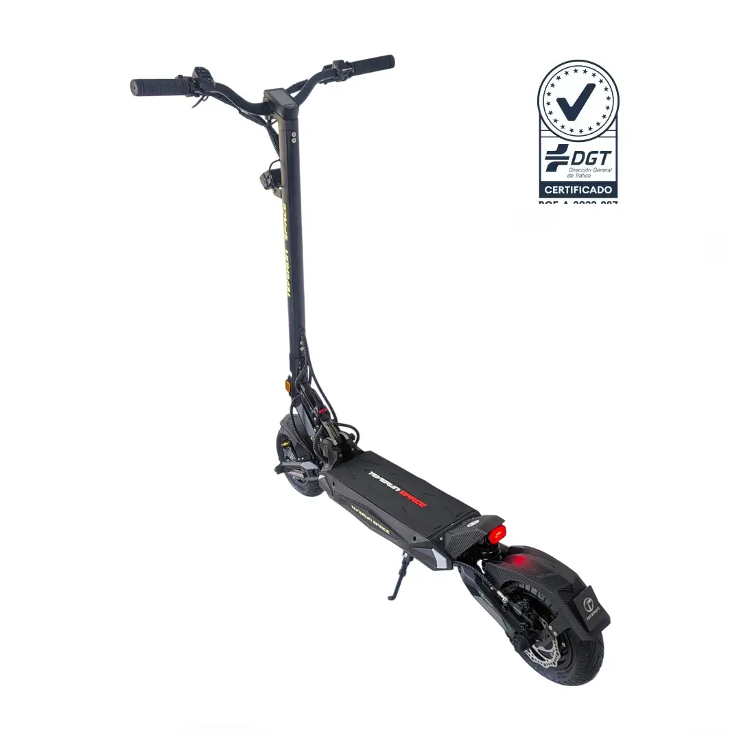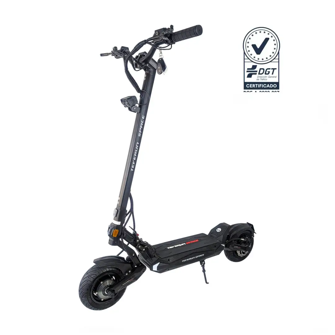Teverun Space. Patinete eléctrico homologado por la DGT. Equipado con un potente Motor Dual de 800W. Con una batería de 52V 18Ah, con esto será capaz de lograr una autonomía de hasta 60 kilómetros con una sola carga. En cuanto a sus prestaciones, destacamos su sistema de frenado hidráulico de disco doble sobre unos neumáticos de 10″ pulgadas Tubeless. Pantalla LCD multifunción, donde podrás tener el control de tu patinete eléctrico. Teverun Space, patinete eléctrico que lo tiene todo a un precio excelente.