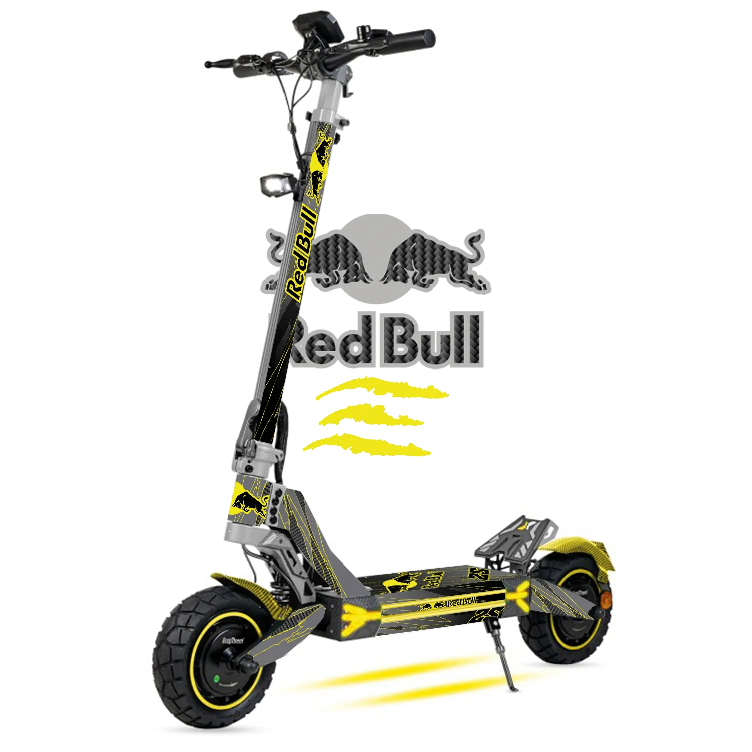 Dale flow racing a tu patinete con el vinilo Ecoxtrem M41 Tank Claw Amarillo. Diseño brutal, materiales premium y protección total contra rayones, sol y lluvia. Fácil de poner, imposible de ignorar.